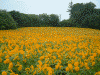 ここのひまわりは八重ひまわりと言って、背丈は1mほどで普通のひまわりと花の形が異なり、鮮やかな山吹色の花がとても目をひきます。