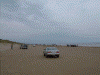 - 羽咋市内に入り、海岸に出ます。ここは「千里浜なぎさドライブウェイ」といい、日本海側に広がる砂浜の上を車で走れる所として有名です。