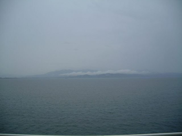 デッキに出てみたら輪島の沖にある海女の島、舳倉島が見えました。