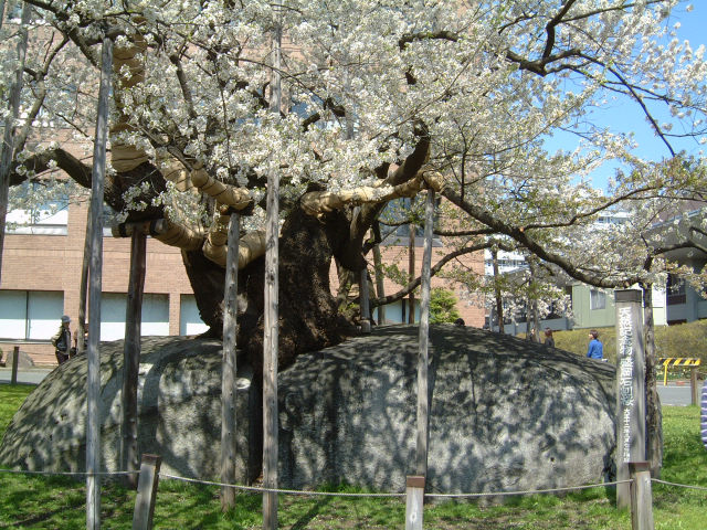 - とことこ歩いて石割桜に到着。たくさんの観光客が訪れていました。