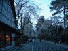 - どんどん空が暗くなる中、武家屋敷としだれ桜を見ます。