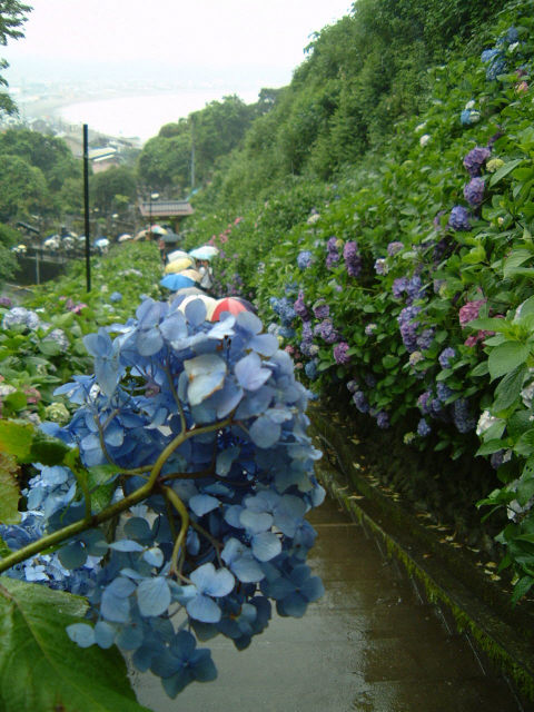 お天気が良ければ、もっと海も映えるのでしょうけど、あじさいは雨が似合う花。難しい選択です(苦笑)