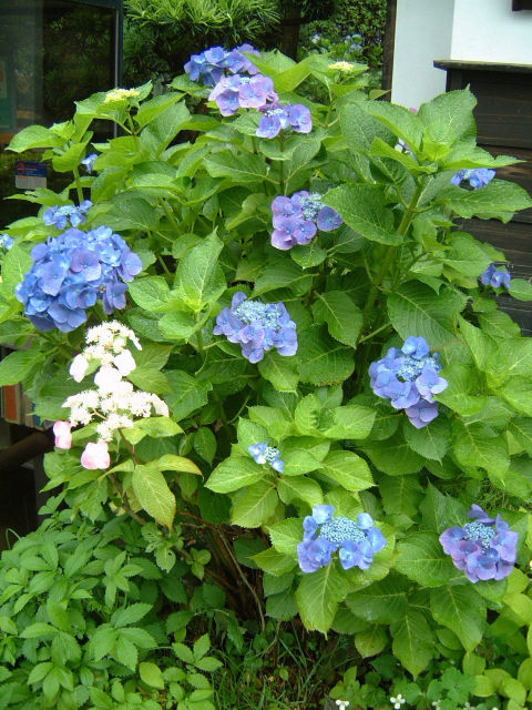 - 極楽寺のすぐ隣にあるギャラリーの前には、とても大きな花びらを持つ濃い青のあじさいが。