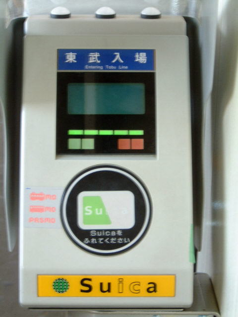 駅がJRと共用しているので、駅の入口で簡易形Suica改札機で入場し、さらに跨線橋上にある「東武入場」と書かれた簡易形Suica改札機にタッチして東武線のホームへ向かいます。