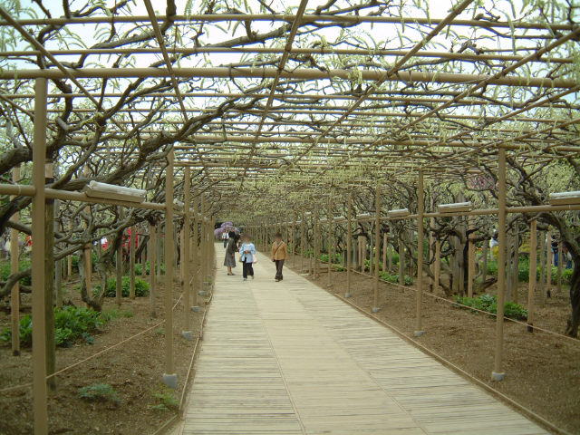 樹齢140年を越すという大藤が作り出す500畳にも及ぶ藤棚は圧巻そのもの。