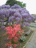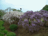 - おみやげのお店を通り抜けて、パーク内に入ると見頃となっているむらさき藤やうすべに藤の花がたくさんあります。
