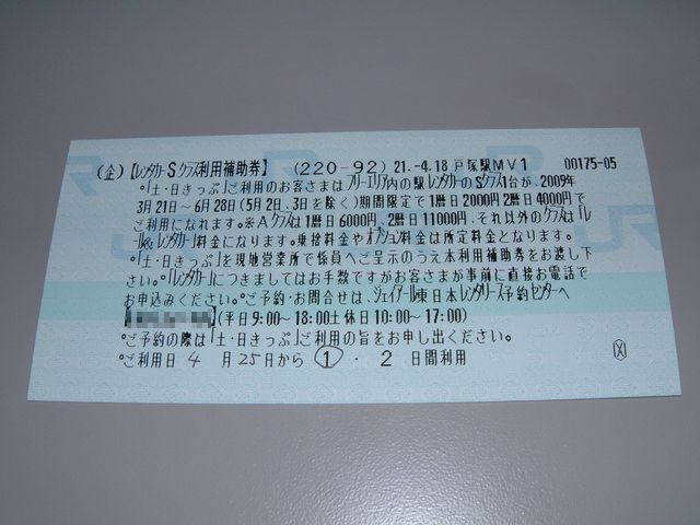 今回は土・日きっぷのキャンペーンで、1日借りてもSクラス2,000円。