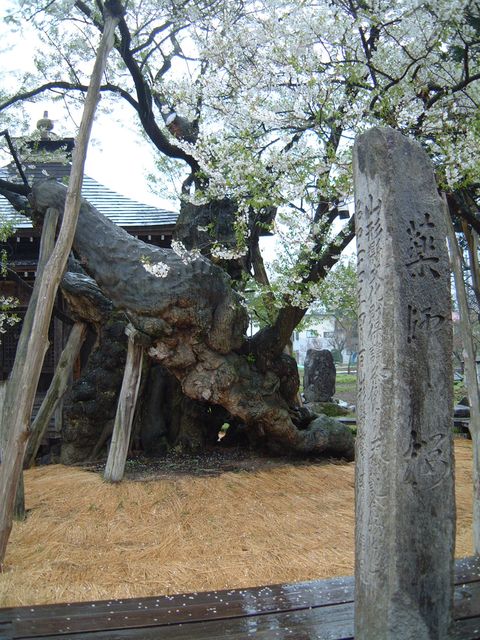 - 薬師桜は、樹齢1,200年と言われるエドヒガンで、その幹の太さが貫禄すら感じました。