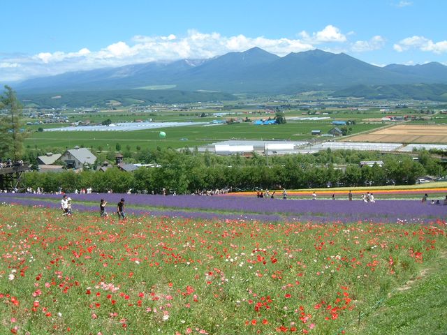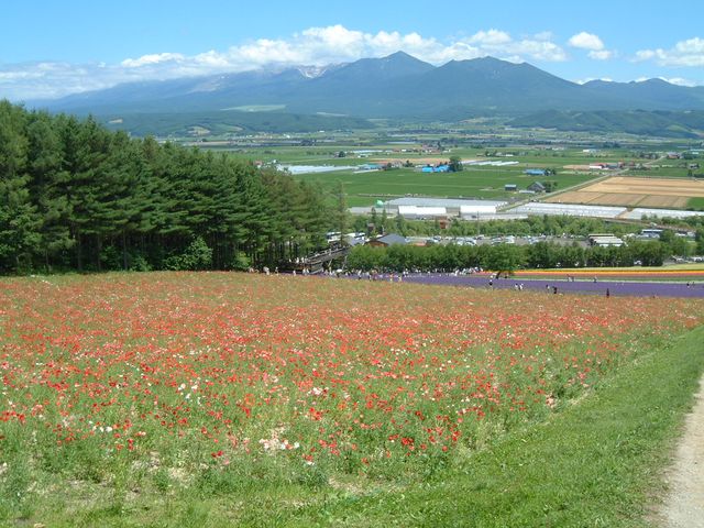 今日は十勝岳連峰への展望もきき、色とりどりの花畑もとてもきれいでした。