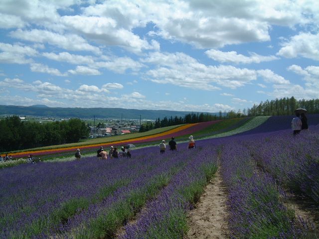 - 中富良野町に入り、第一目的地であるファーム富田へ。